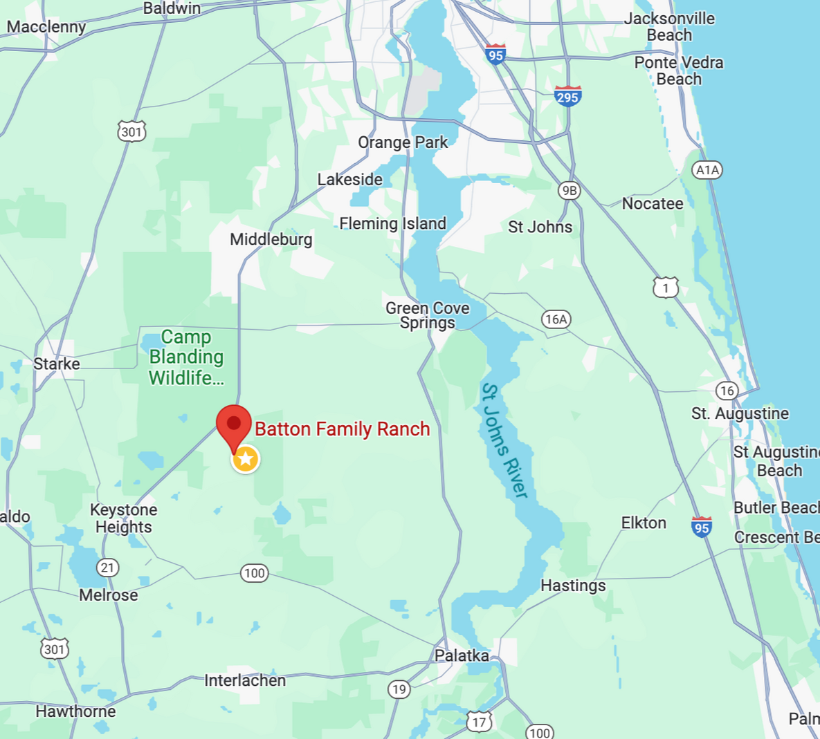 Batton Family Ranch is a private home in Keystone Heights, please call or message us to make an appointment for a trail ride or to visit the horses and discuss your needs.